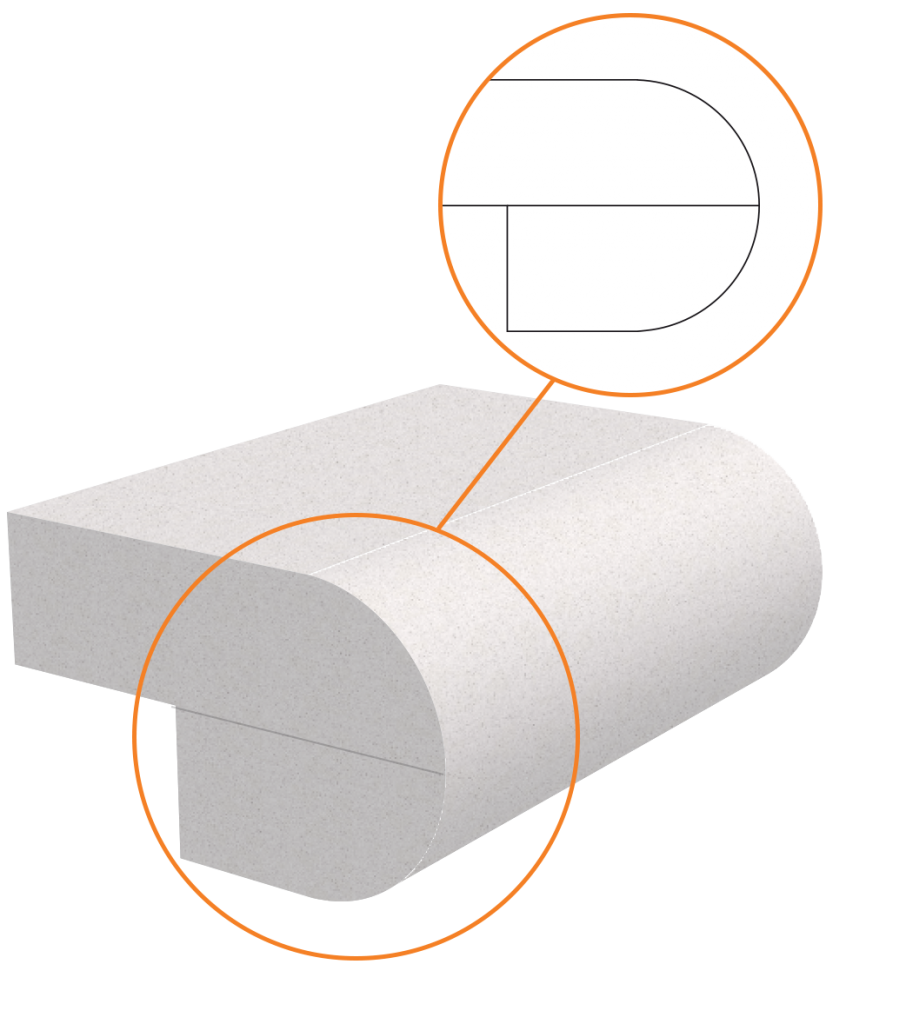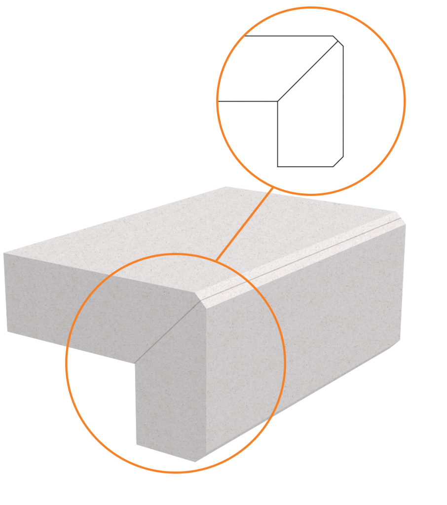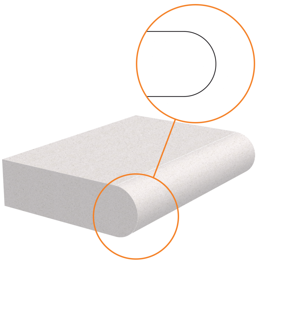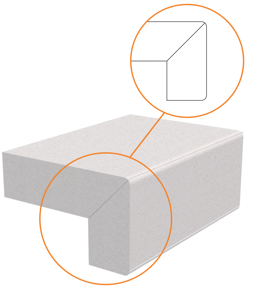 - The top and bottom of edges must be rounded. Do not create square edges as the larger the surface area of the edge (ie. radius), the more resistant it is to chipping