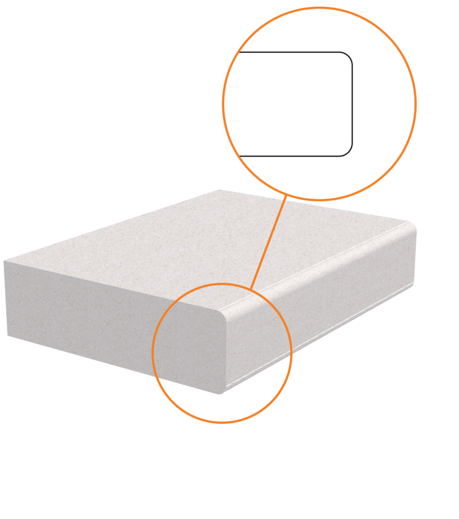 Caesarstone recommends a minimum range for edge profiles of 3 to 4 millimetres with a rounded edge to reduce the risk of chipping and increase the safety of the surface edges for your space.