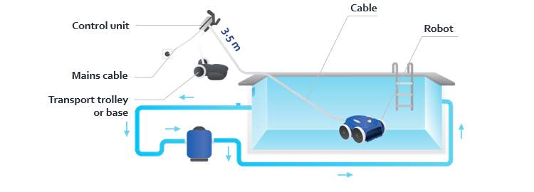 –  The filter is housed inside the robot (independent of the pools filter)