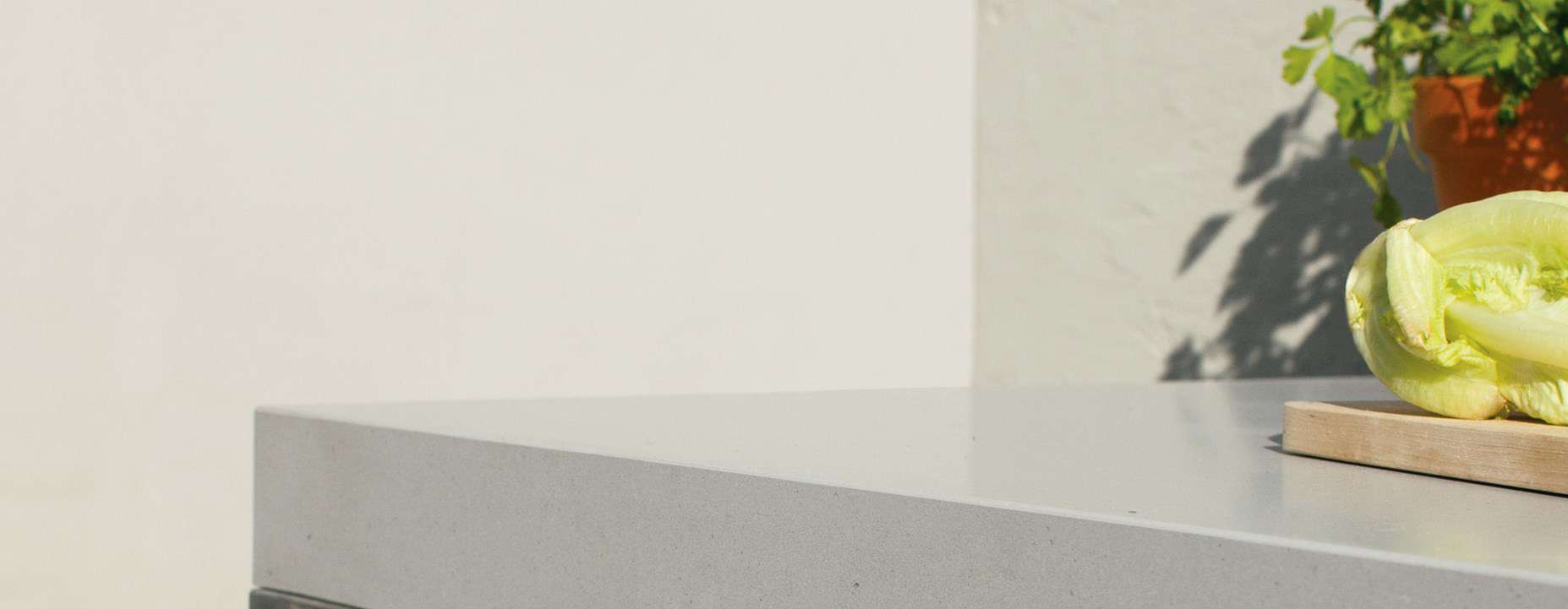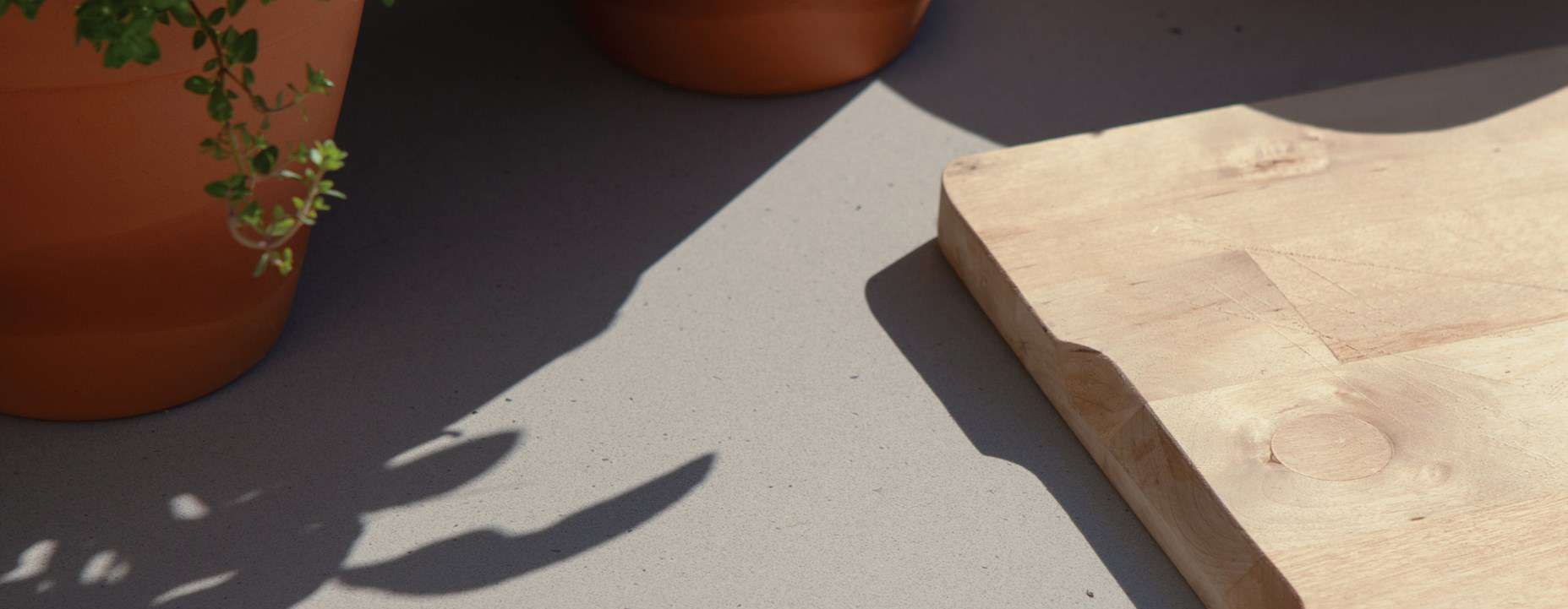 Caesarstone® Clearskies™ is a beton grey endowed with tiny flecks bringing the earthen look of organic materials to benchtops, outdoor settings splashbacks, dining tables and more.