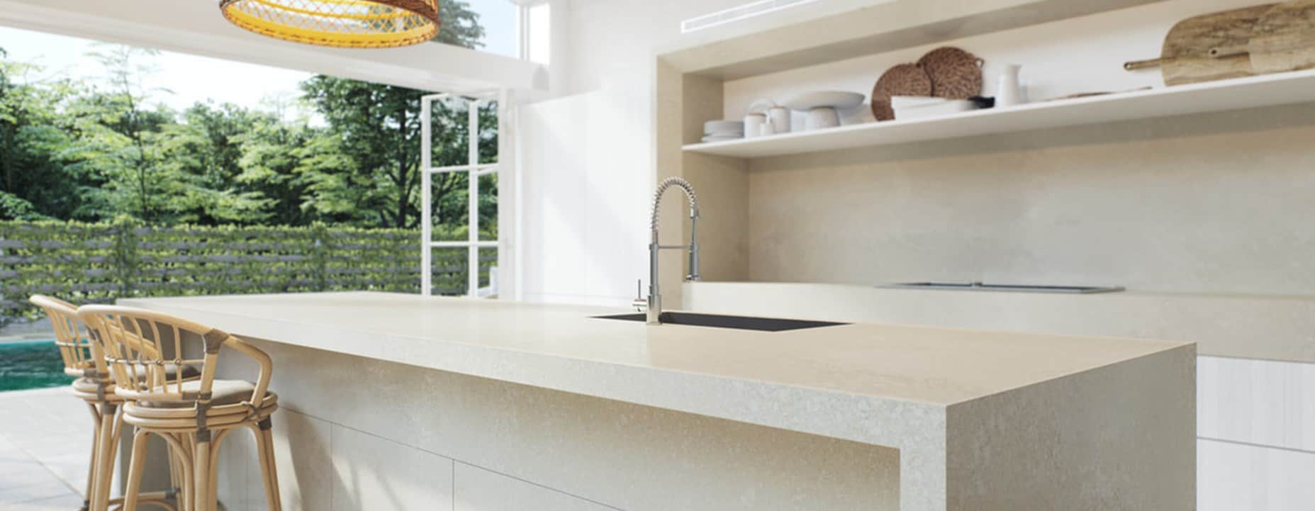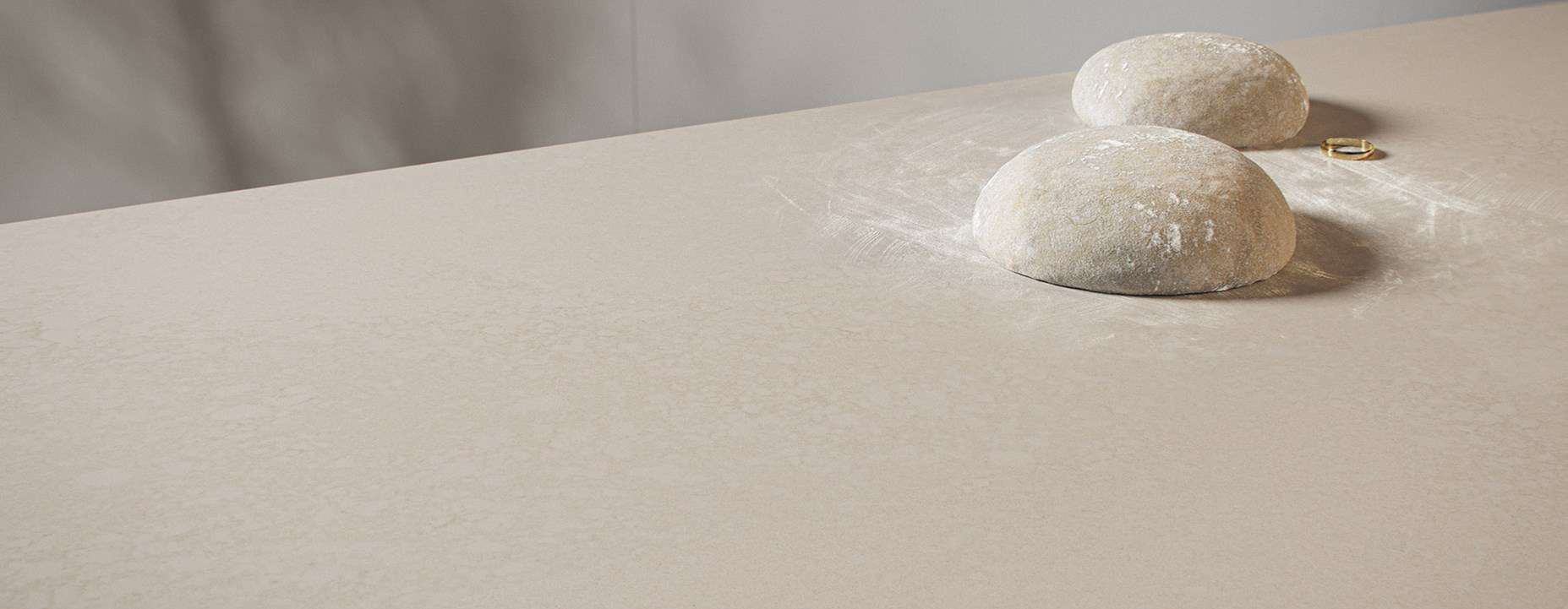 Adamina is a veil of calming organic neutrals, enveloped bythe subtle tactility of Caesarstone’s Natural finish. It complements materials that embrace calmness in the home, working well with walls in off-white, warm grey, and beige, or tiling and cabinetry in this hushed palette. The surface blends-in with casual furniture, and flows naturally into open spaces. It can also take on a deeper design twist, by combining it with light woods or concrete. Stainless hardware keeps the sandy surface looking clean and simple, since its down-to-earth aura makes it an ideal backdrop for a relaxed room.