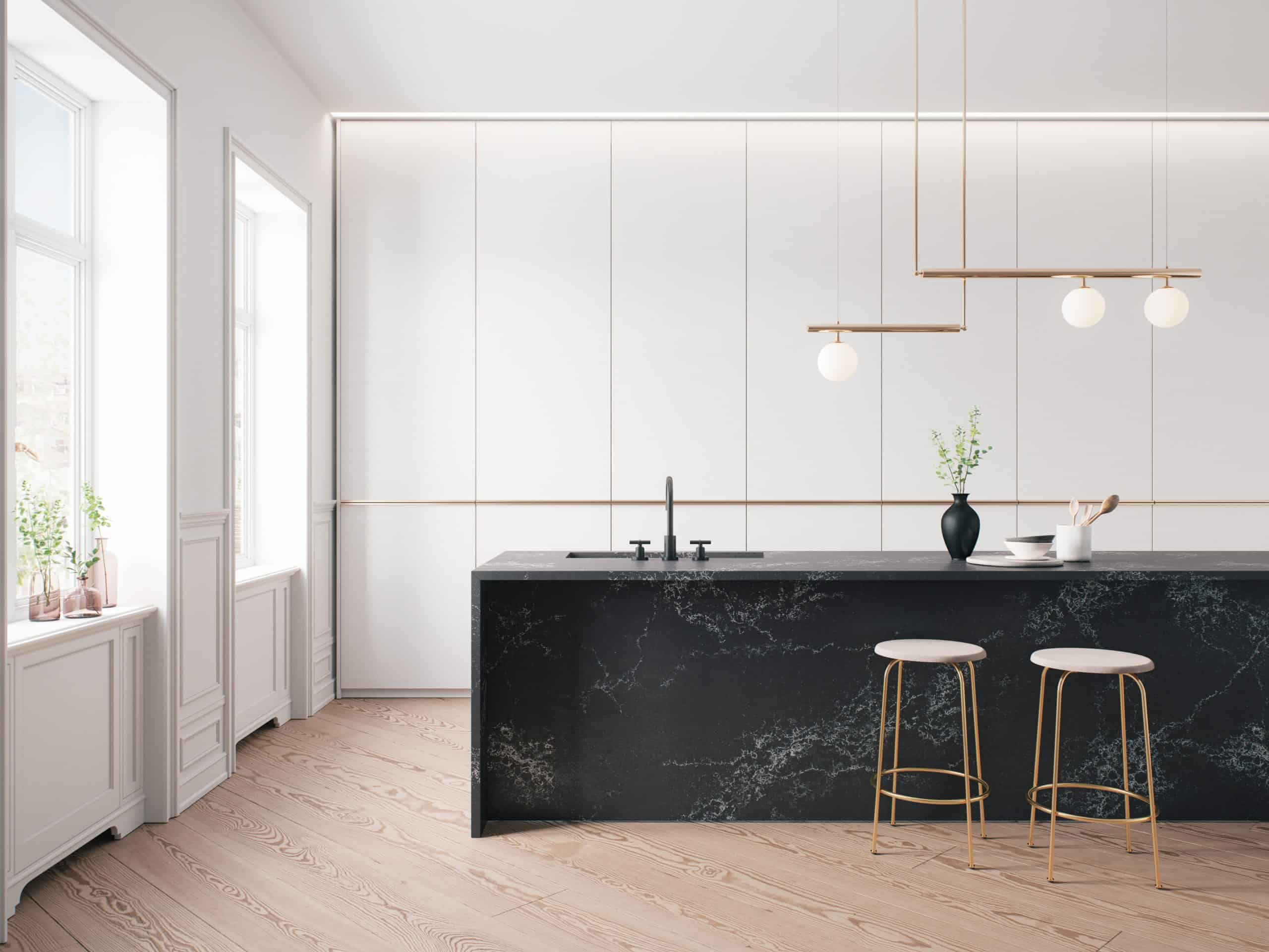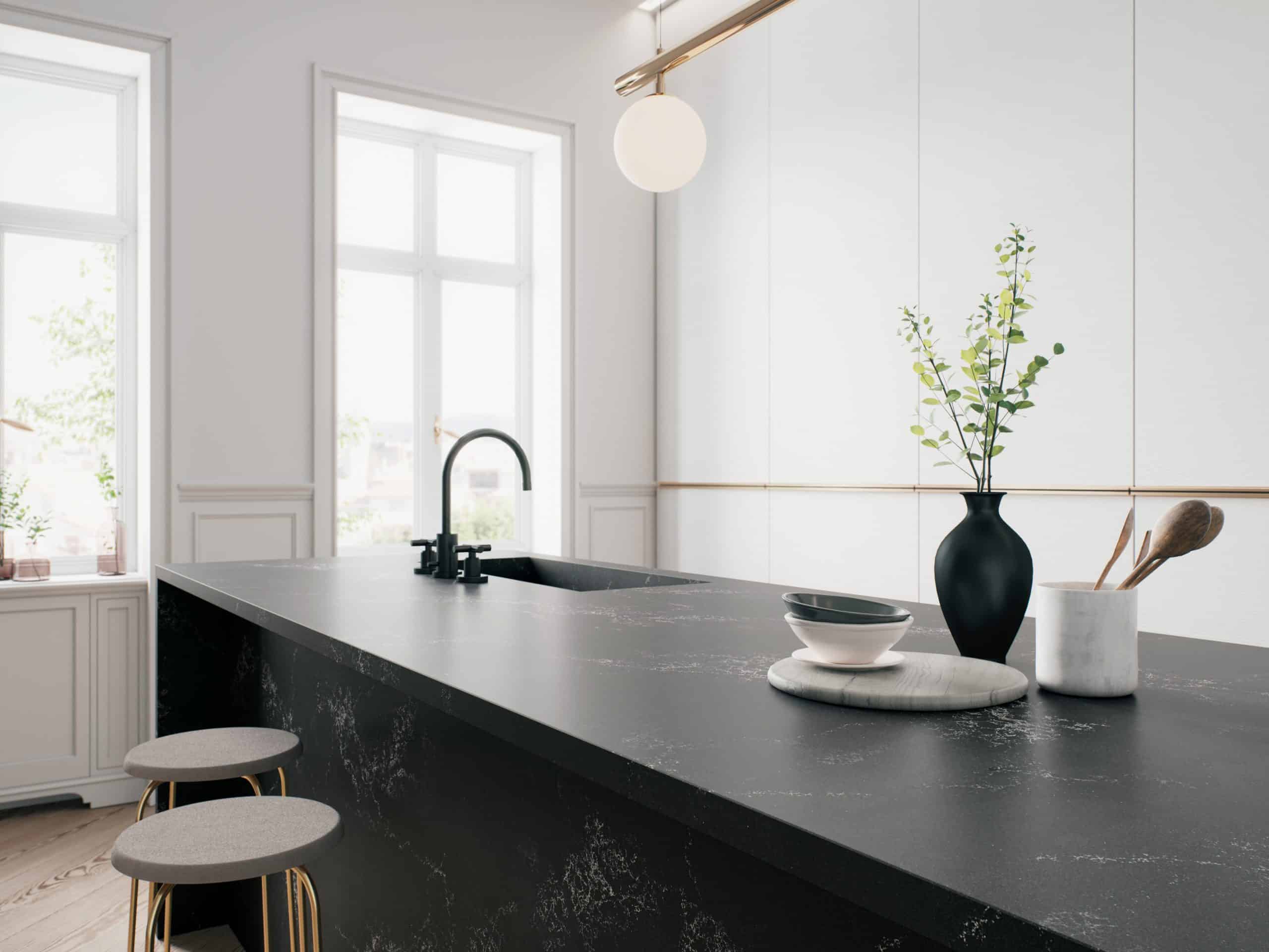With all the mystery of any dark stone, Empira Black™ has a dark base composed of rich, deep black beautified by fine white natural veins. Emotional and full of depth, Caesarstone’s Natural Polish heightens its elegant feel without overwhelming its innate essence. Inspired by the authentic characteristics of natural forms, Empira Black™ endows the space with the sophistication of real marble.