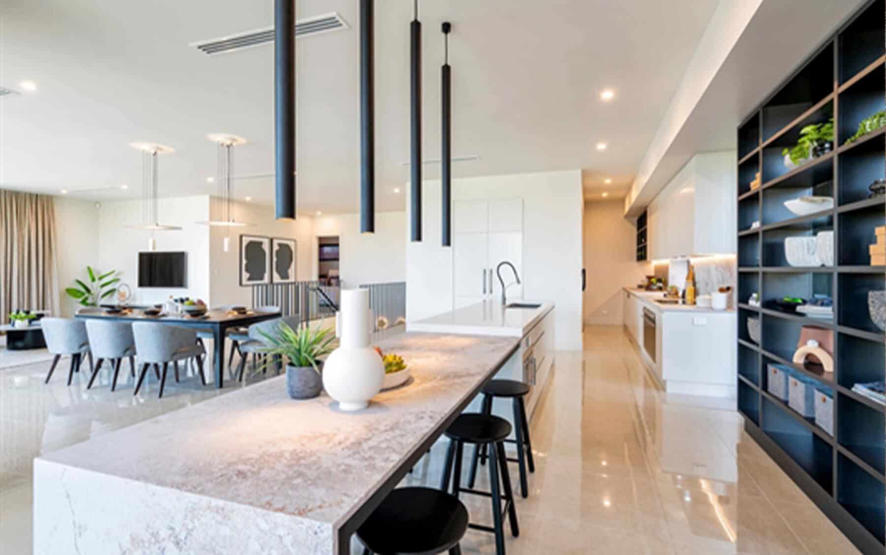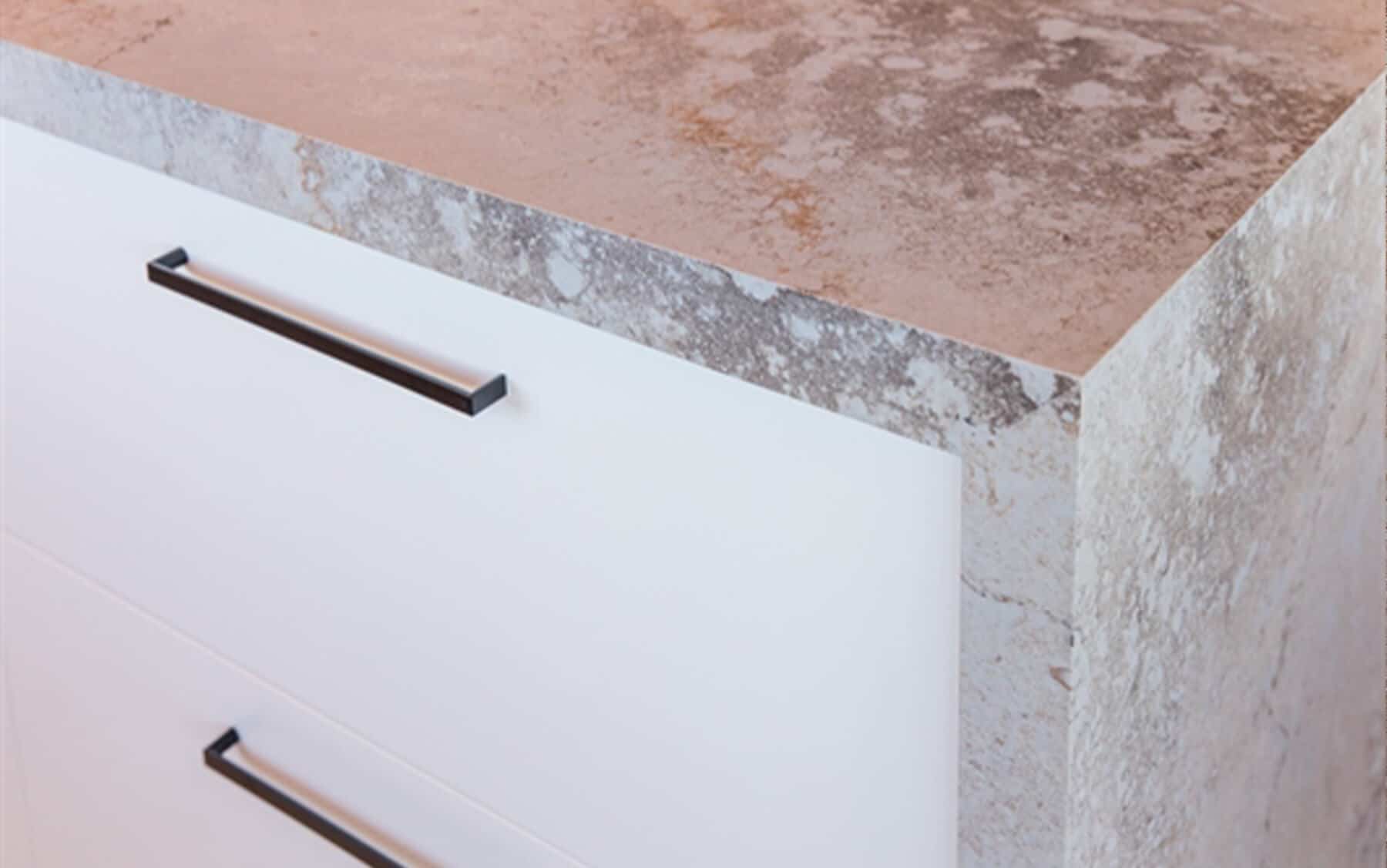 Excava samples are only indicative of a part of a slab, and we strongly encourage viewing displays in your nearest Caesarstone Showroom or Kitchen Retail Showroom to appreciate first-hand the nature of this high movement design. For any bench top greater than 20mm thick we recommend selecting mitred aprons to achieve the best surface-to-edge pattern continuity.