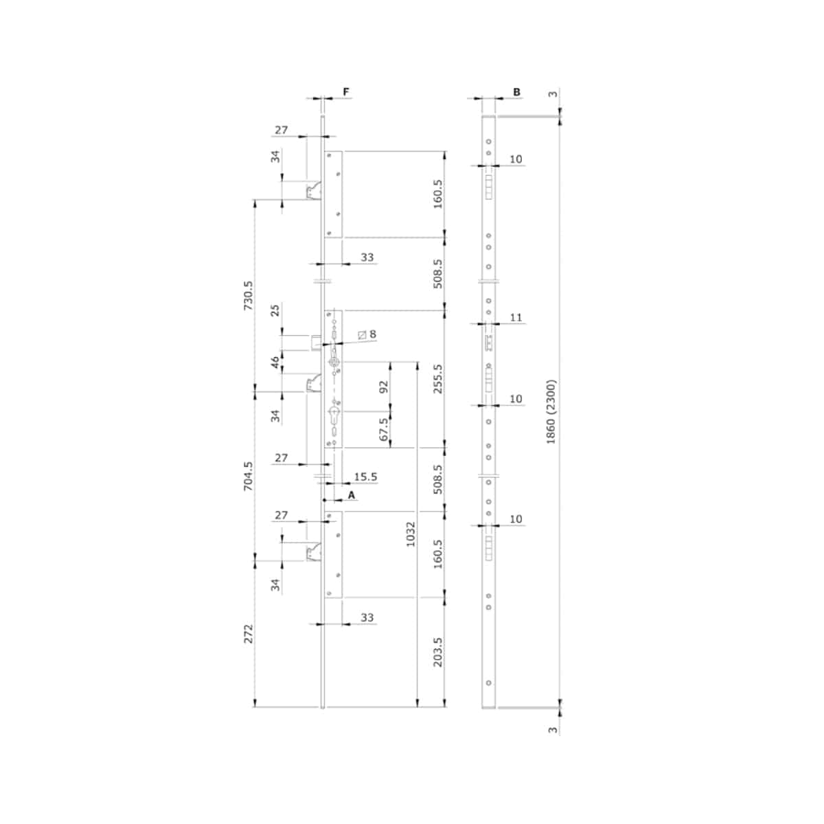 - Modular system for more flexible warehouses: the latchbolt can be replaced with a roller or cap (only deadbolts). The deviators can be added/replaced to the basic central lock with a long front plate available