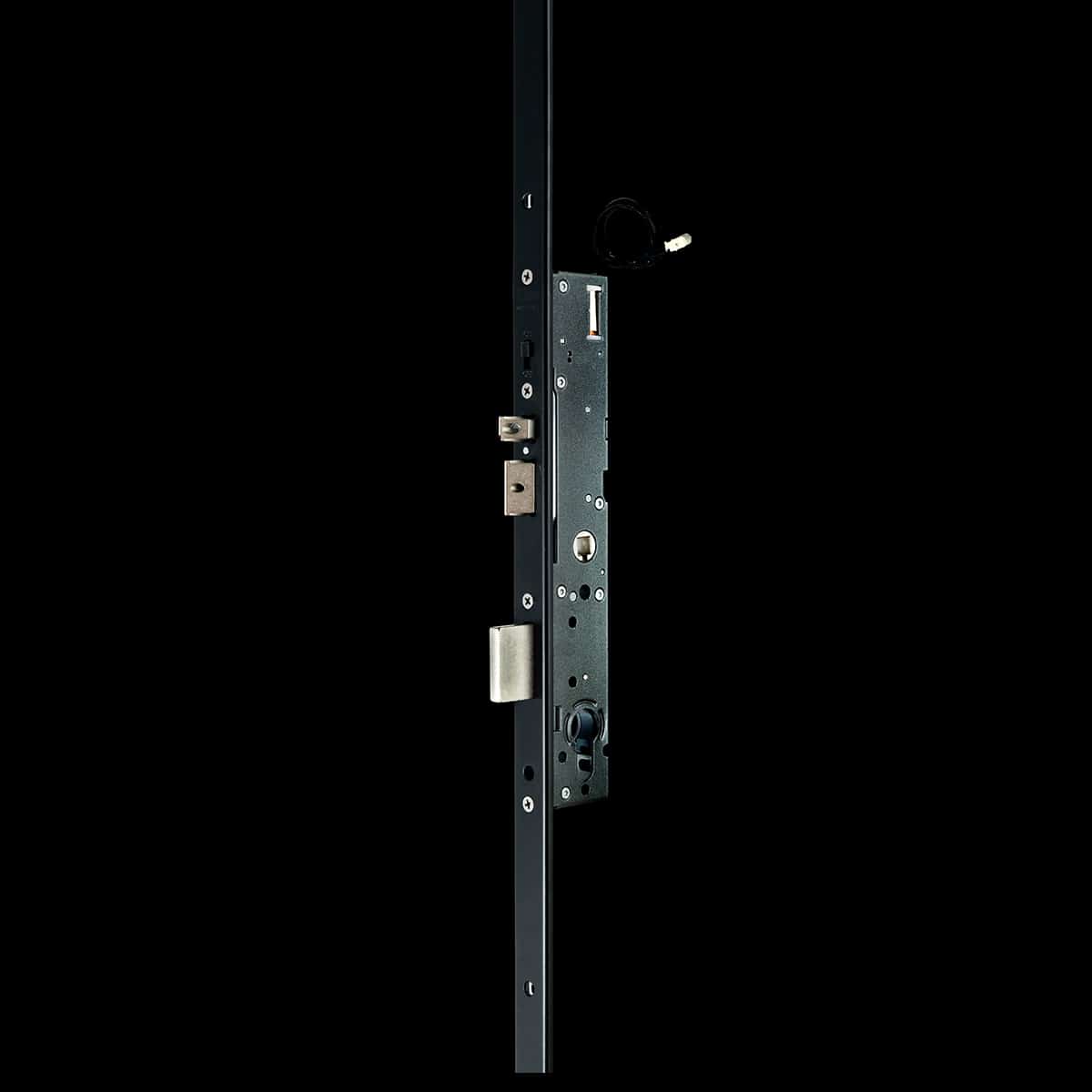 - Lock with gear mechanism that reduces force on the key and ensures airtight sealing of the door, with heat and sound insulation and energy savings as a result.