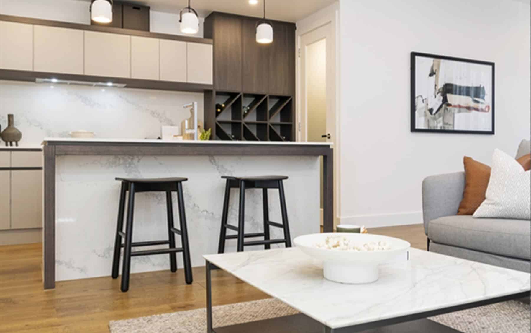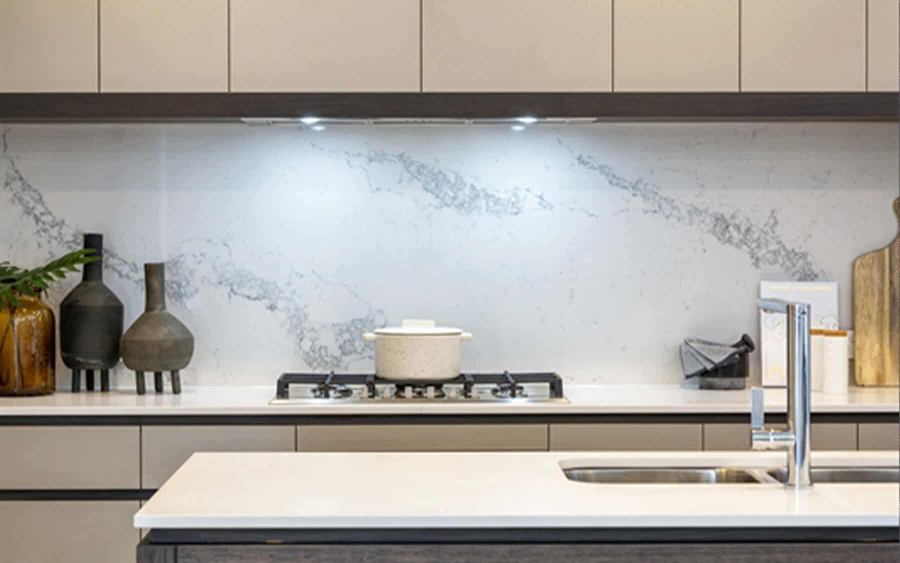 With Statuario Maximus’s large scale vein pattern, we encourage those of you that select this design to view your actual full slabs first hand at the stonemason prior to them commencing fabrication. We also recommend selecting mitred aprons to achieve the best surface-to-edge pattern continuity for any bench top greater than 20mm thick.